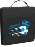 13-1/2” X 13-1/2” Deluxe polyester stadium cushion with front pock and carry strap, complete with your school or team logo.